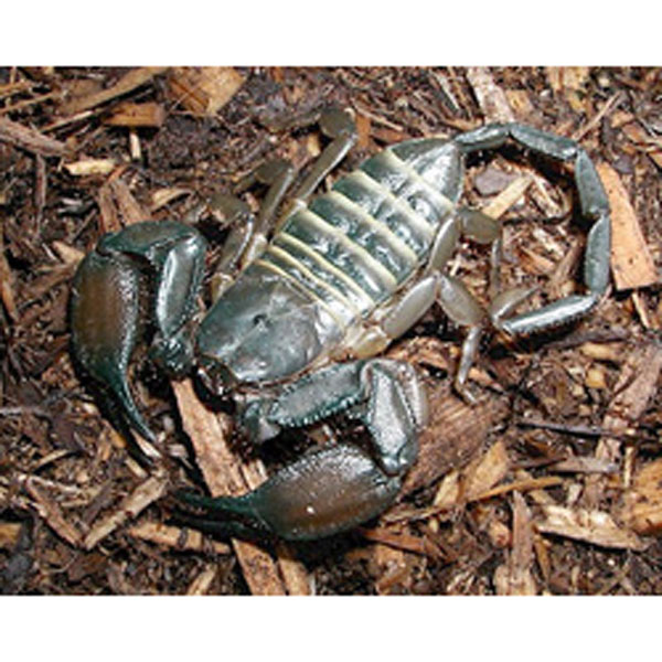 Hadogenes troglodytes is a species of scorpion from southern Africa. It is commonly known as the flat rock scorpion and commonly sold on the exotic pet market It was once regarded as having the longest recorded body length of any scorpion, reaching up to 20 cm, however Heterometrus swammerdami currently holds the record for being the world's largest scorpion at 9 inches (23 cm) in length.